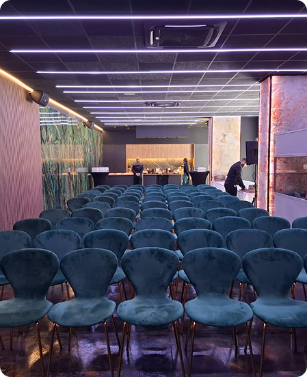 En Green Golden Congress BCN Events, ofrecemos un espacio totalmente privado de 150 m², con luz natural. Equipado con tecnología de vanguardia y diseñado para ser versátil, es el lugar ideal para cualquier tipo de evento. Nuestra propuesta gastronómica de alto nivel, unida a un equipo excepcional y atento, garantiza que cada evento se lleve a cabo con éxito.